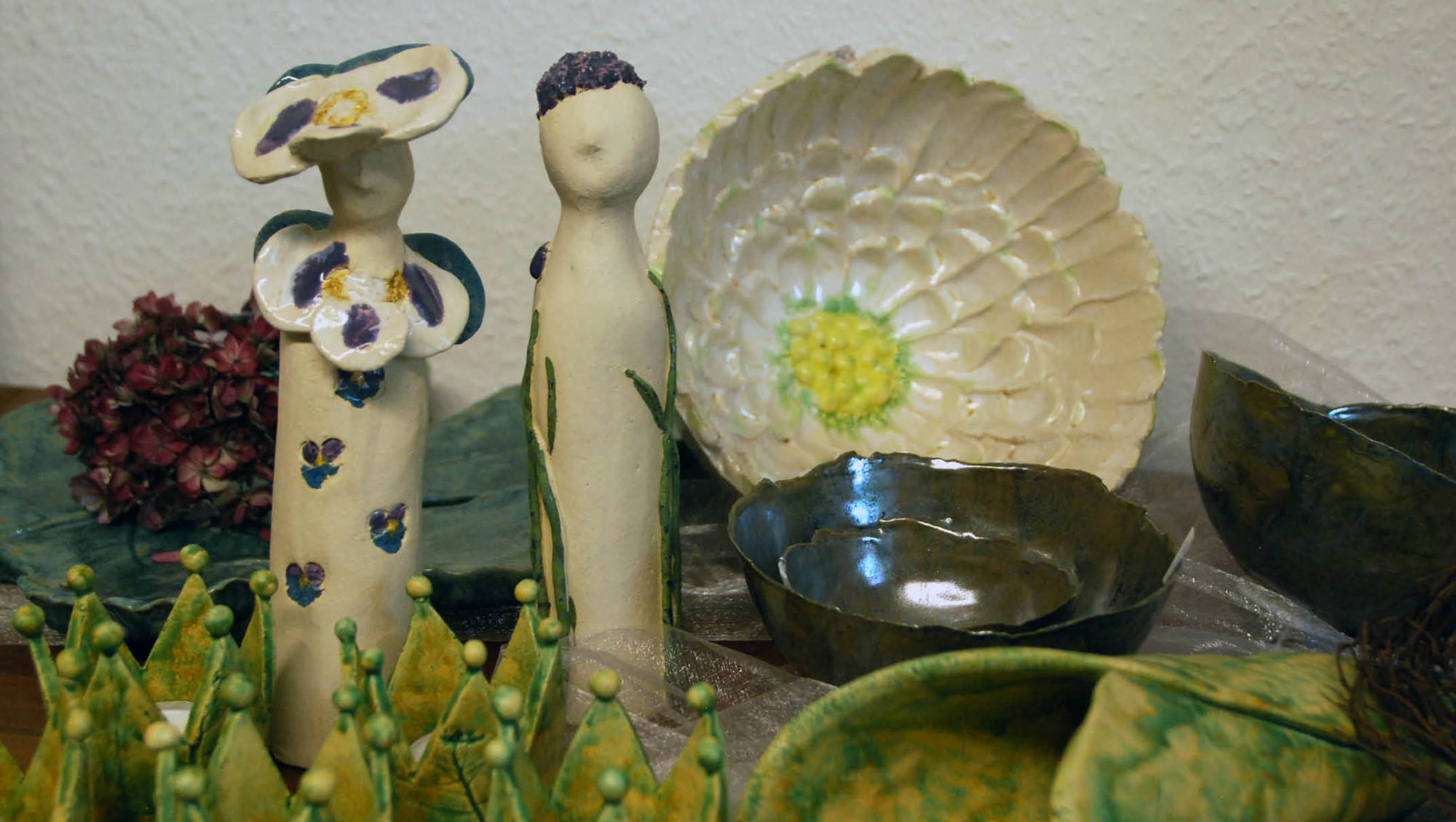 Wir fertigen in unserem Atelier Keramikunikate, Gartenkeramik und Dekoration für jede Jahreszeit. Barbara Claaßen unterstützt und berät uns als gelernte Floristin bei Kombinationen von Keramik und Pflanzen.